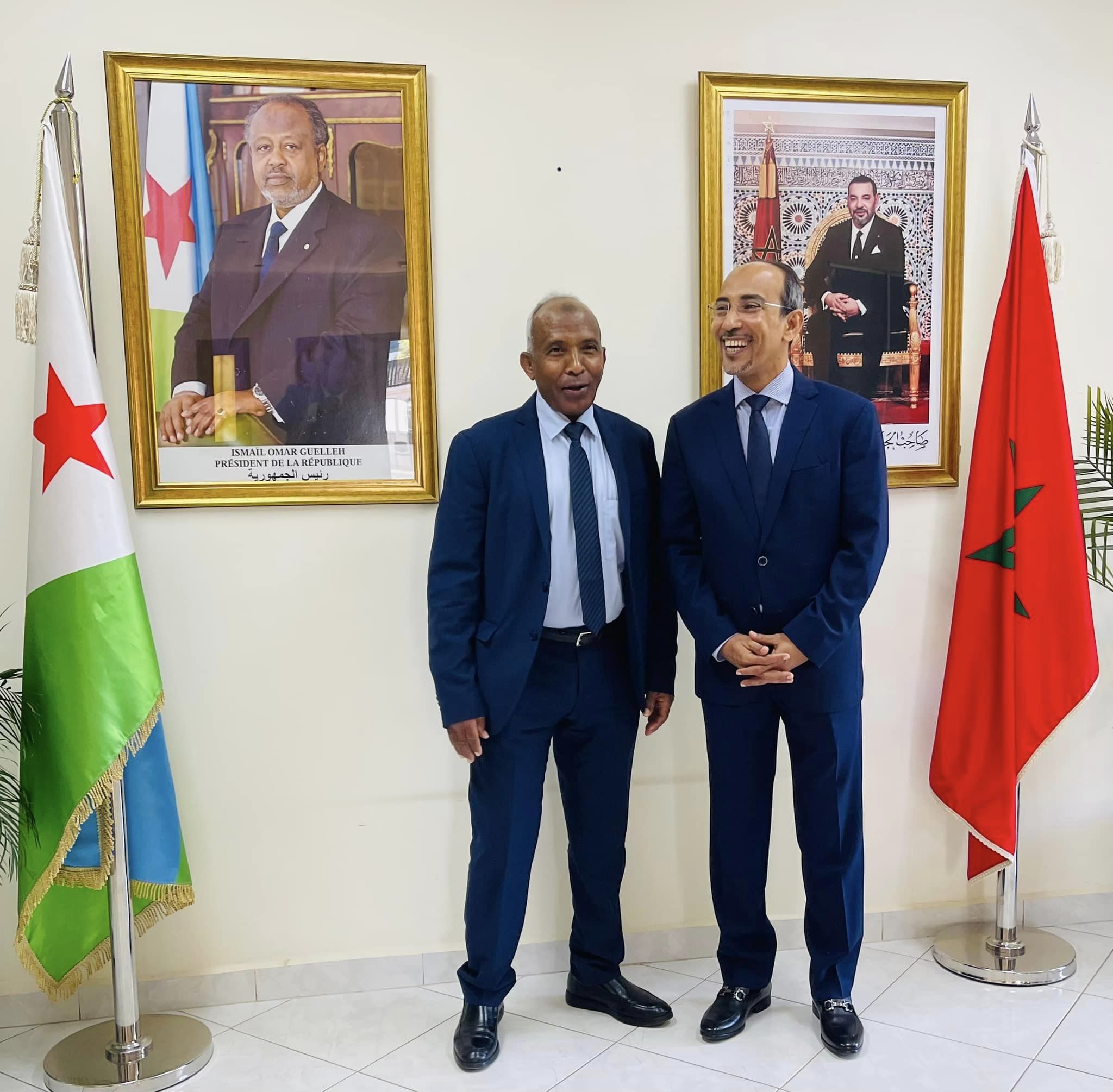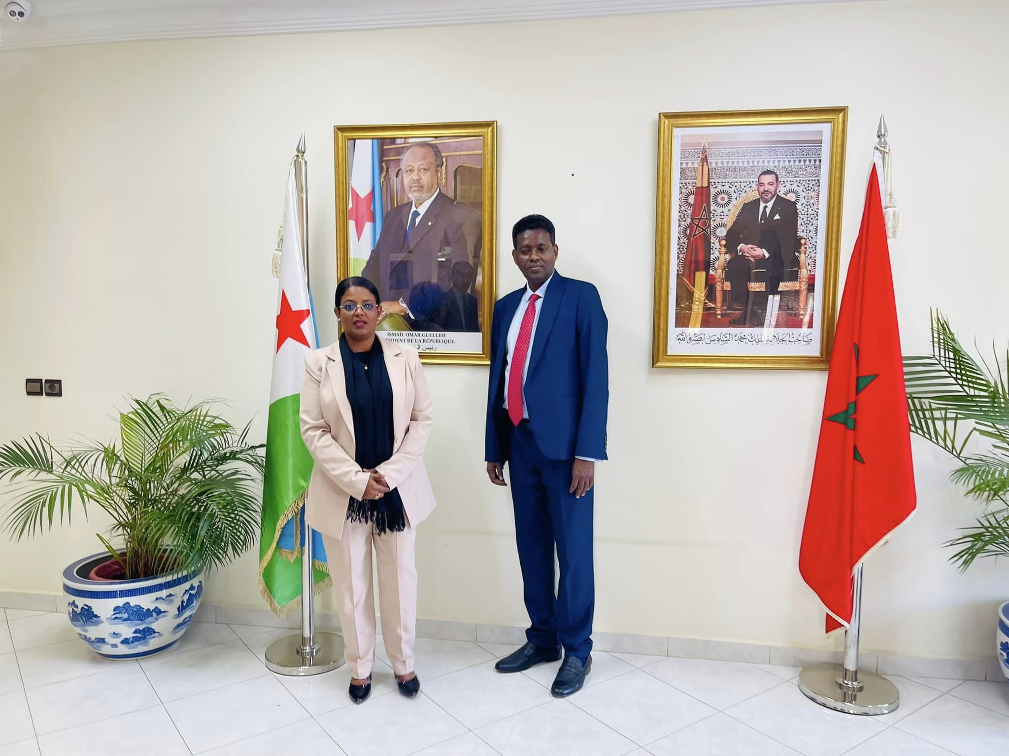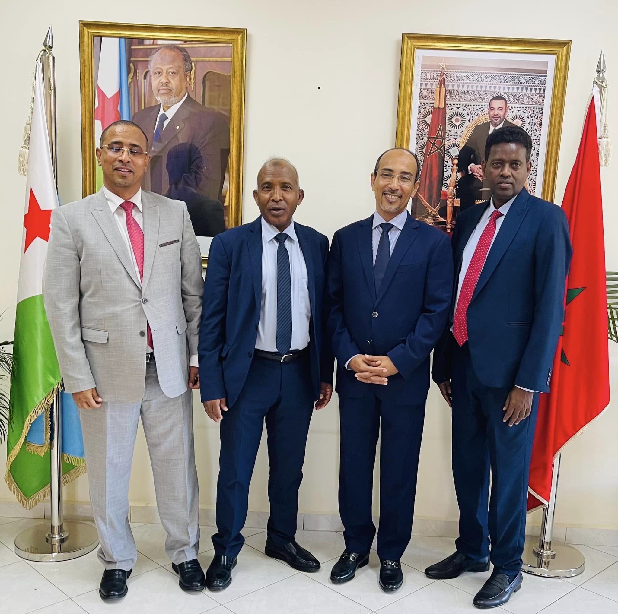 Son Excellence Monsieur Mohamed Douhour Hersi a eu l'insigne honneur d'accueillir dans les locaux de l'Ambassade à Rabat, Son Excellence Ambassadeur Mohamed Ali Hassan, Secrétaire Général du Ministère des Affaires et de la Coopération Internationale et Monsieur Mohamed Doualeh, Directeur du Monde Arabe.