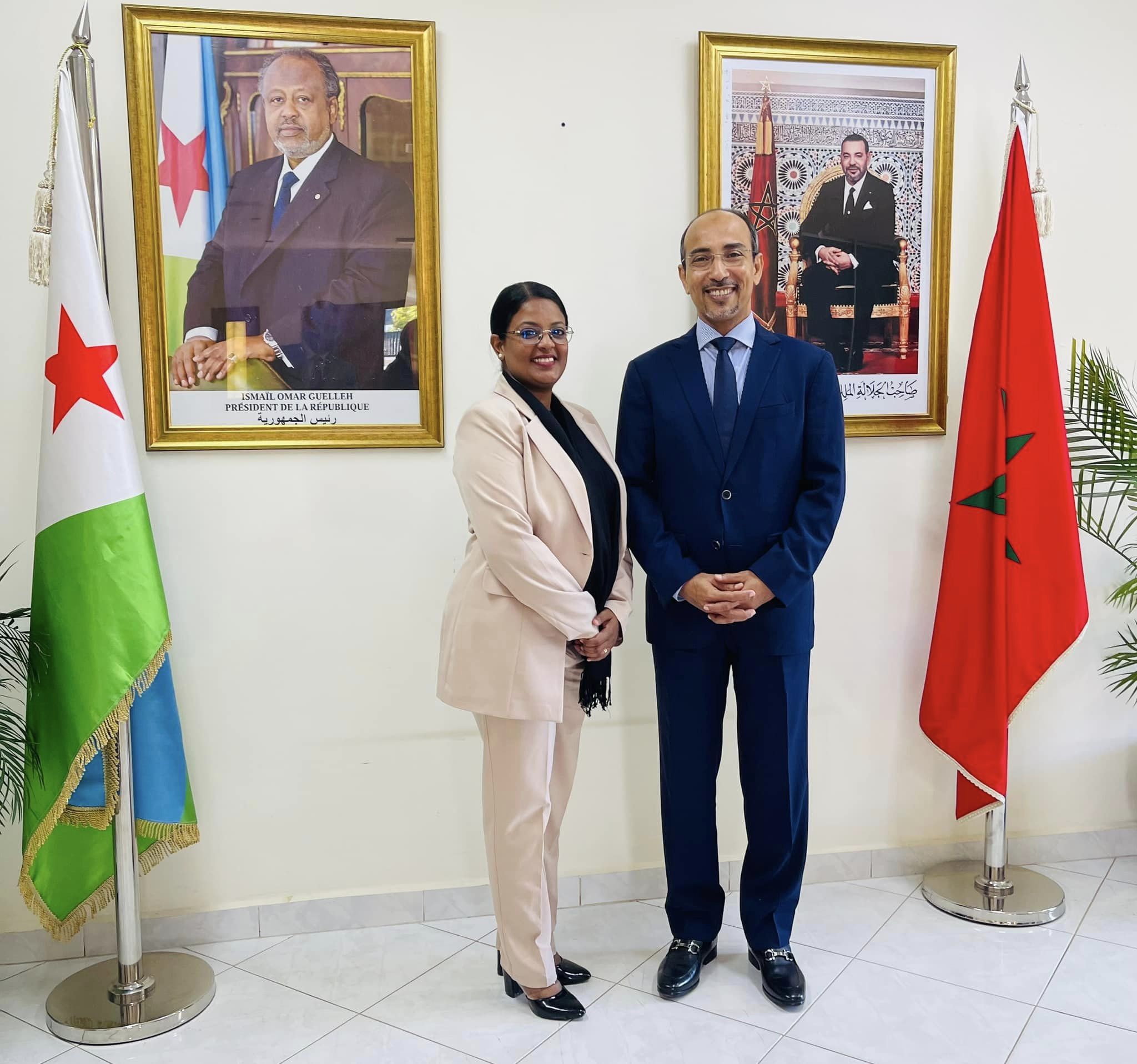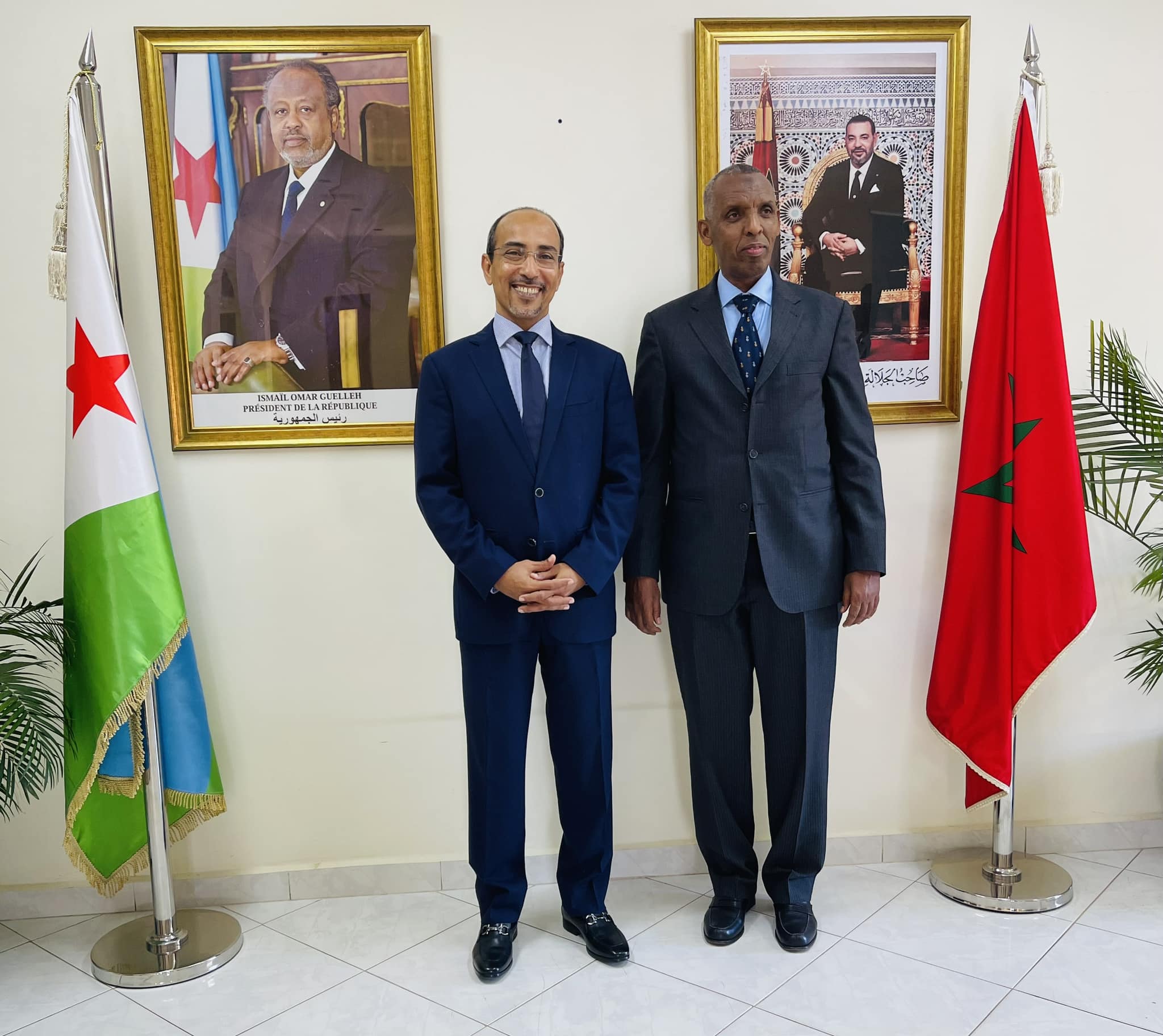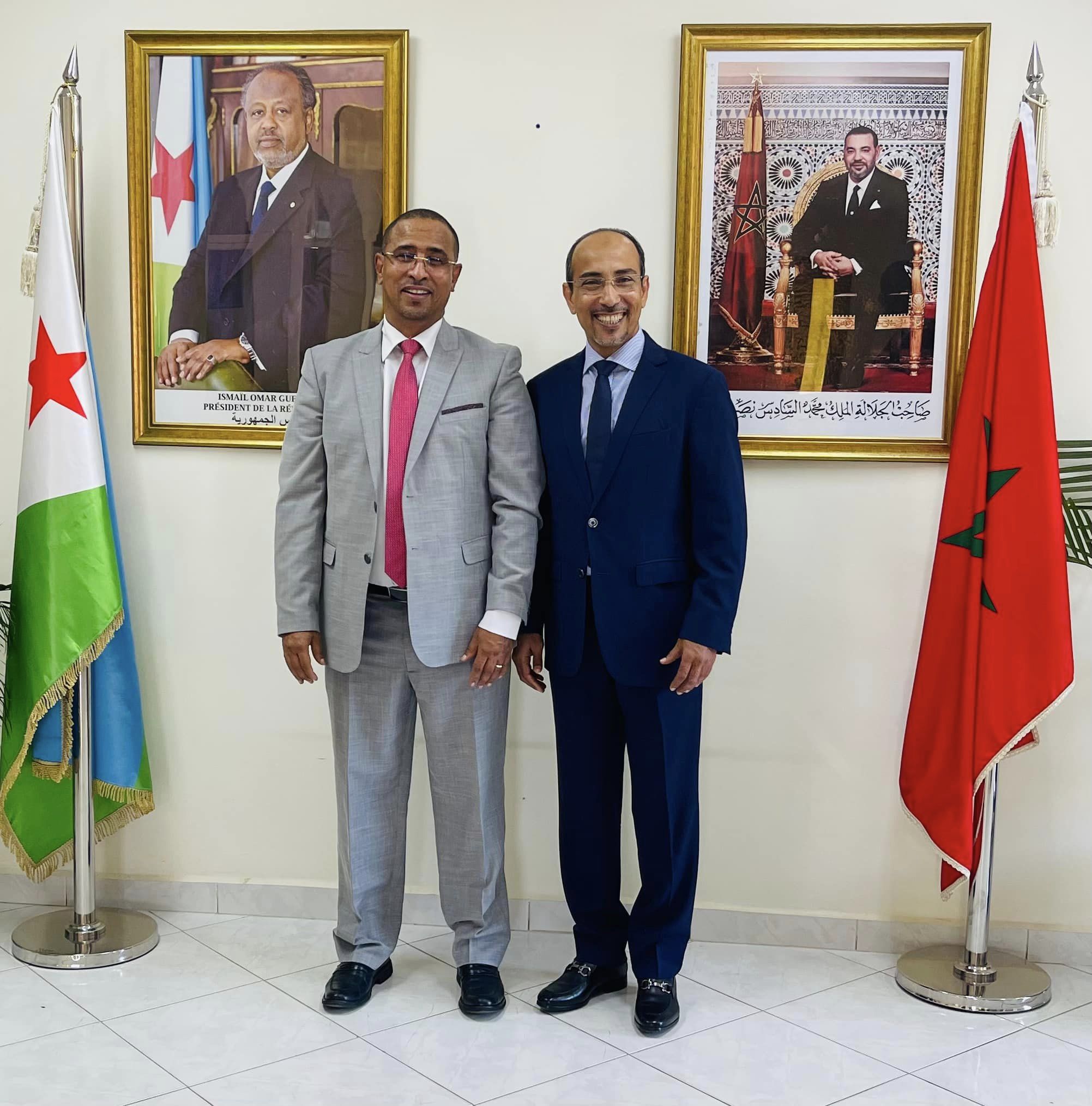 Son Excellence Monsieur Mohamed Douhour Hersi a eu l'insigne honneur d'accueillir dans les locaux de l'Ambassade à Rabat, Son Excellence Ambassadeur Mohamed Ali Hassan, Secrétaire Général du Ministère des Affaires et de la Coopération Internationale et Monsieur Mohamed Doualeh, Directeur du Monde Arabe.