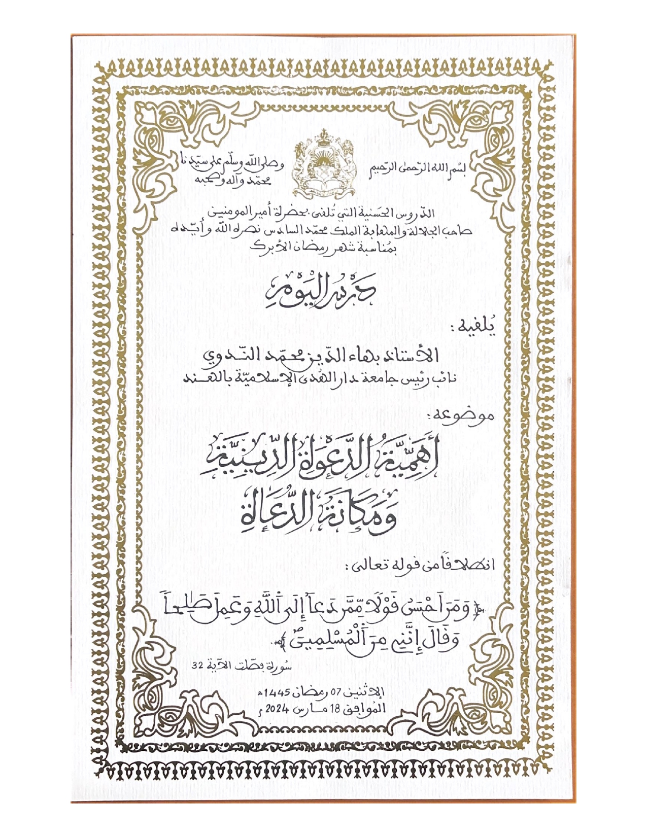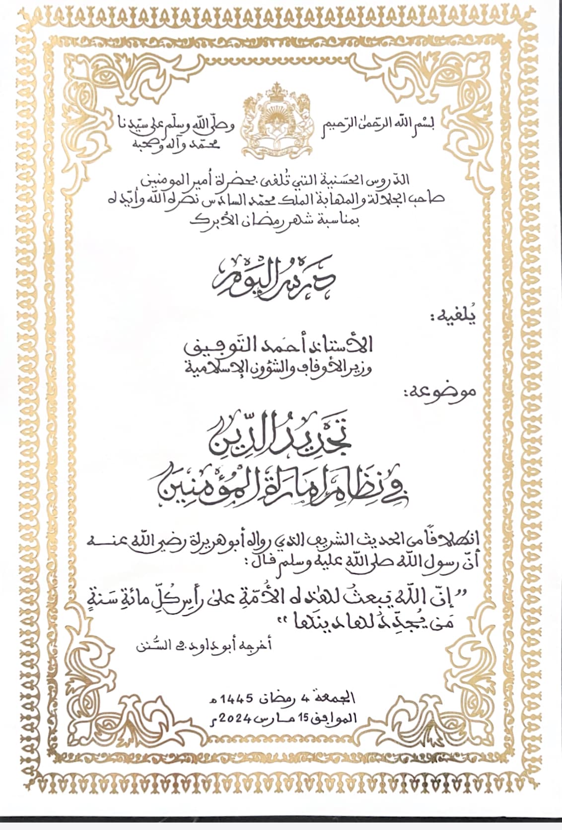 Première causerie religieuse du ramadan: Imarat al mouminine et le renouveau de la religion